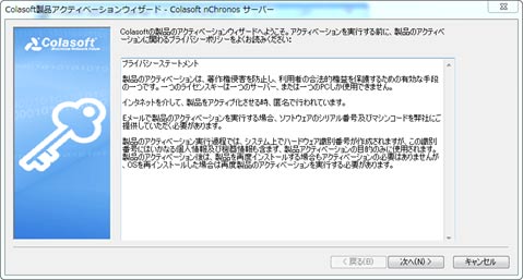 1、サーバーをインストールした後、下図のようにアクティベーションウィザードが表示され、ステップごとにアクティベーションをガイドします。「次へ」をクリックします。