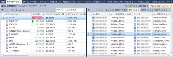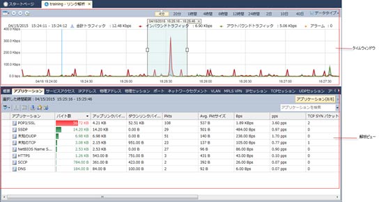 解析ビューには、タイムウィンドウで選択された時間範囲の様々な統計情報と解析データが表示されます。ネットワークオブジェクトをドリルダウンしたり、マルチセグメント解析を行ったりすることで、ネットワーク問題を特定することができます。