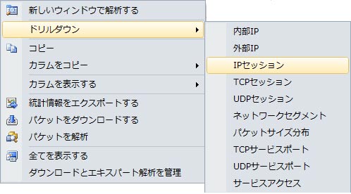 1、 TCPセッションビュー、またはIPセッションビューにおいて、関心のセッションを右クリックし、「マルチセグメント解析」をクリックします。