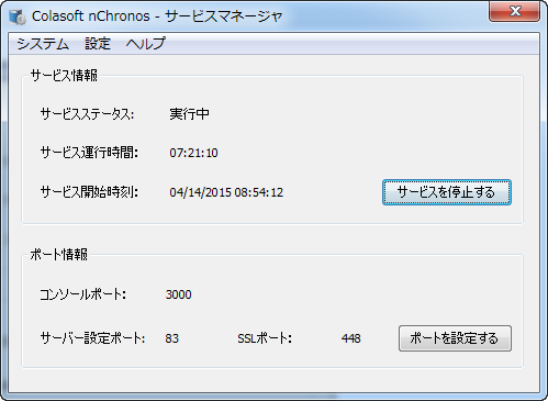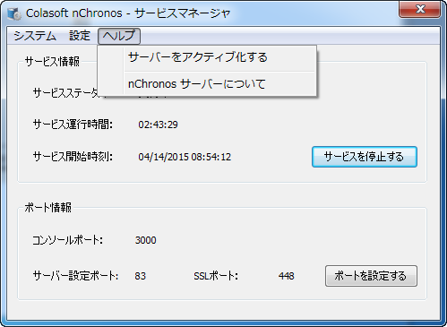nChronosコンソール或いはサービスマネージャーでnChronosサーバーをアクティベーションできます。