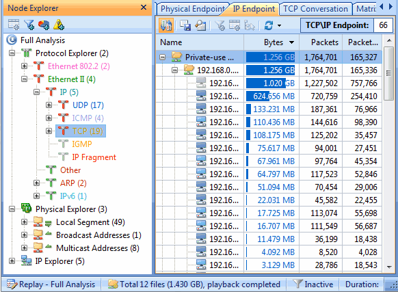 Capsaのユニークなノードエクスプローラウィンドウを使用すると、単一のプロトコル上でドリルダウン分析を行い、メインビューの詳細情報タブで、専用の情報を表示することができます。