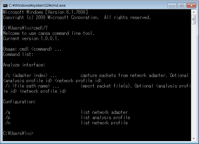 コマンドラインンでCapsaを起動することができます。コマンドラインで新しいキャプチャーまたはパケットファイルのリプレイを開始することもできます。以下のステップに従い、コマンドラインでCapsaを起動します。