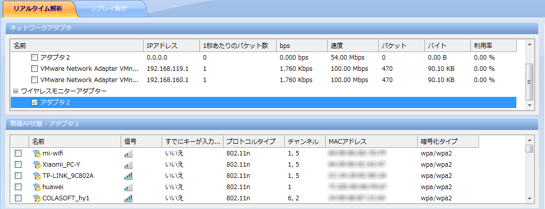 また、ワイヤレスパケットキャプチャのデバイス(ネットワークドングルコネクター)を、端末に拡張することで、監視モードとして動作させることも可能になりました。