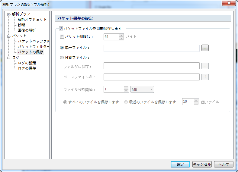 二つの方法でパケットファイルを保存することができます:単一ファイルと分割ファイル。図2と図3をご参考ください。
