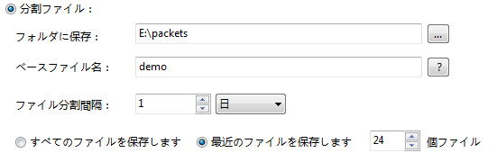 キャプチャされたパケットを分割ファイルに保存すれば、スプリットファイルオプションを(月、日、時、分、KBまたはMB)のいずれかに設定することができ、パケットファイルを管理することが簡単になります。