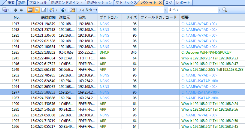 上図のとおり、ブロードキャストパケットは830.88Kbで、総トラフィックの10%ぐらいしかありません。それはネットワークにあるブロードキャストが正常であることを表明しています。