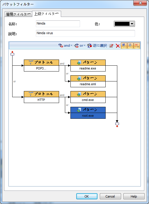 トロイの木馬とワームのパターンを有するフィルタールールを作成してください