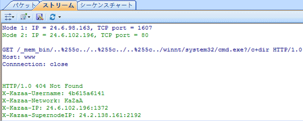 ネットワーク内でトロイの木馬またはワームの活動は発見された時、ノードブラウザにマシンのIPアドレスをロケートし、TCP会話またはUDP会話をチェックすることができます。TCPセッションタブで、データフローサブタブに(TCPセッションはデータサブタブ付き)、通信の再構成されたデータを読み取ることができます。会話がシステム情報を送信している場合は、トロイの木馬とワームの活動に注意しなければなりません。