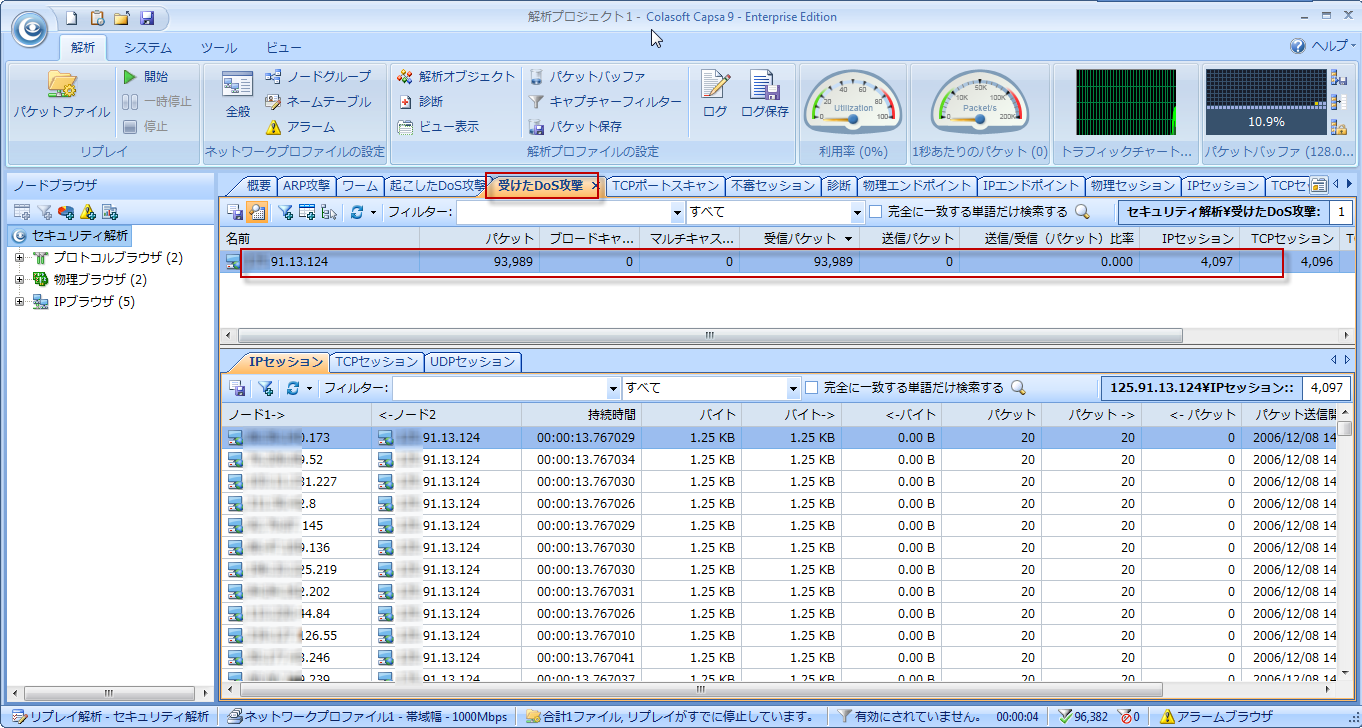「受けたDoS攻撃ビュー」をクリックして、そのビューで統計データがあることで、お使いのネットワークは確かにDoS攻撃されたことを確認できます。