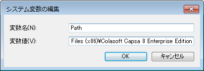 5. 変数値に"cmdl.exe"という名前のファイルのパス、つまりCapsaのインストールディレクトリを入力します。セミコンで既存のパスと入力されたパスを区切る必要があります。