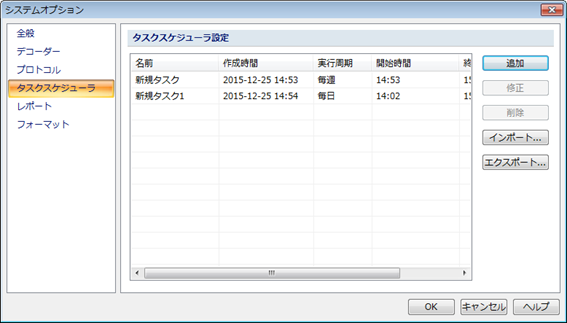 「タスクスケジューラ」ウィンドウに、追加ボタンをクリックして、新しいキャプチャスケジュールを作成します。新しいスケジュールを作成するには、設定できるスケジュールのタイムタイプは三つあります。